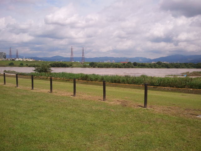 この日の明け方に、京都北部に降った局地的豪雨の為か、淀川はかなり増水していました。